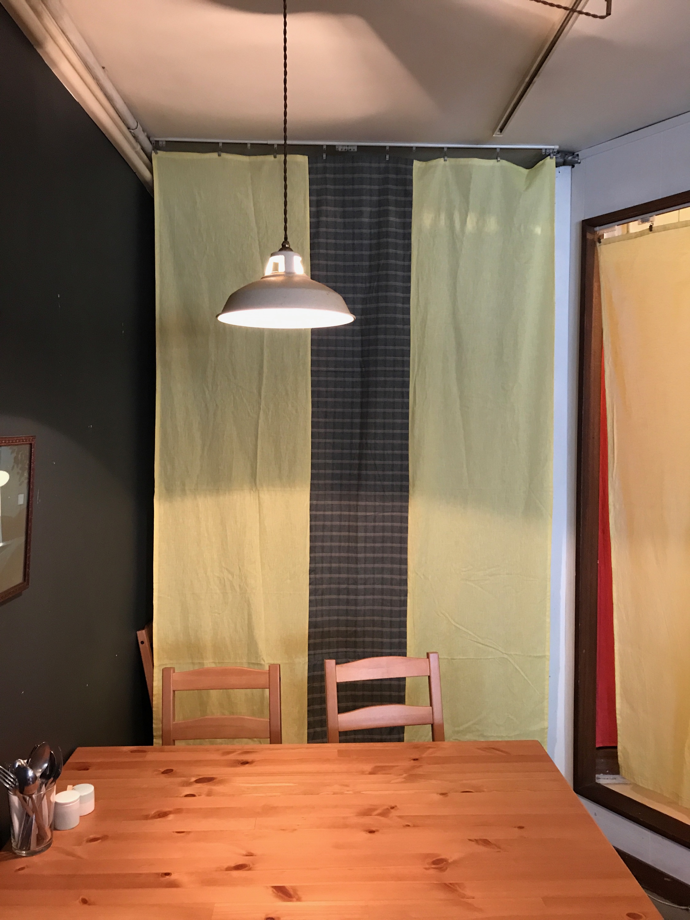 年末にも紹介した高校の同級生が生駒でやり始めたアトリエのカーテンなどを播州織で。
